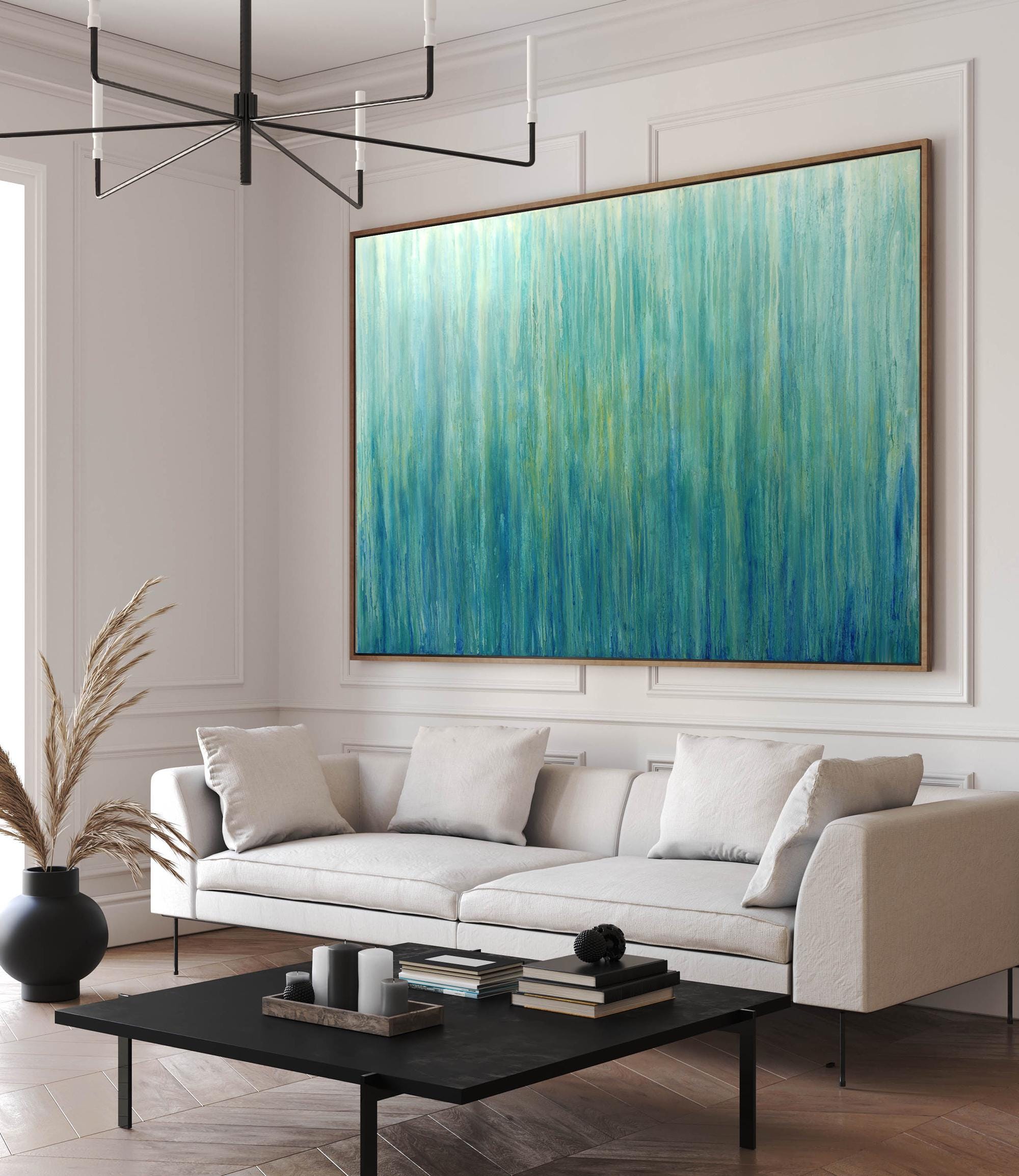 BLUE GREEN ORIGINAL PAINTING, Minimalist Abstract Art, Made to Order Painting