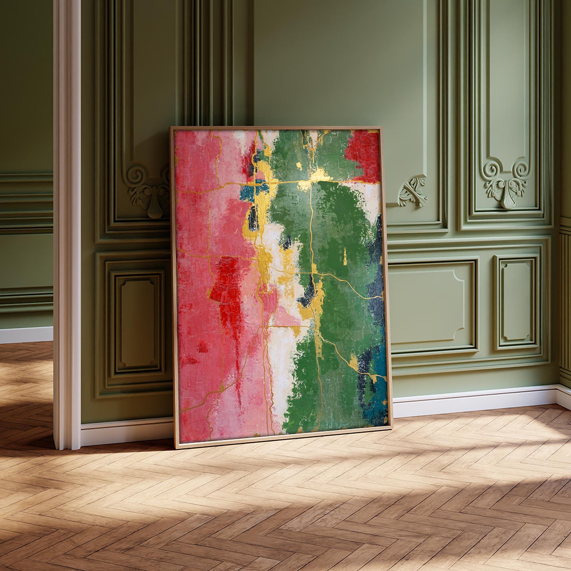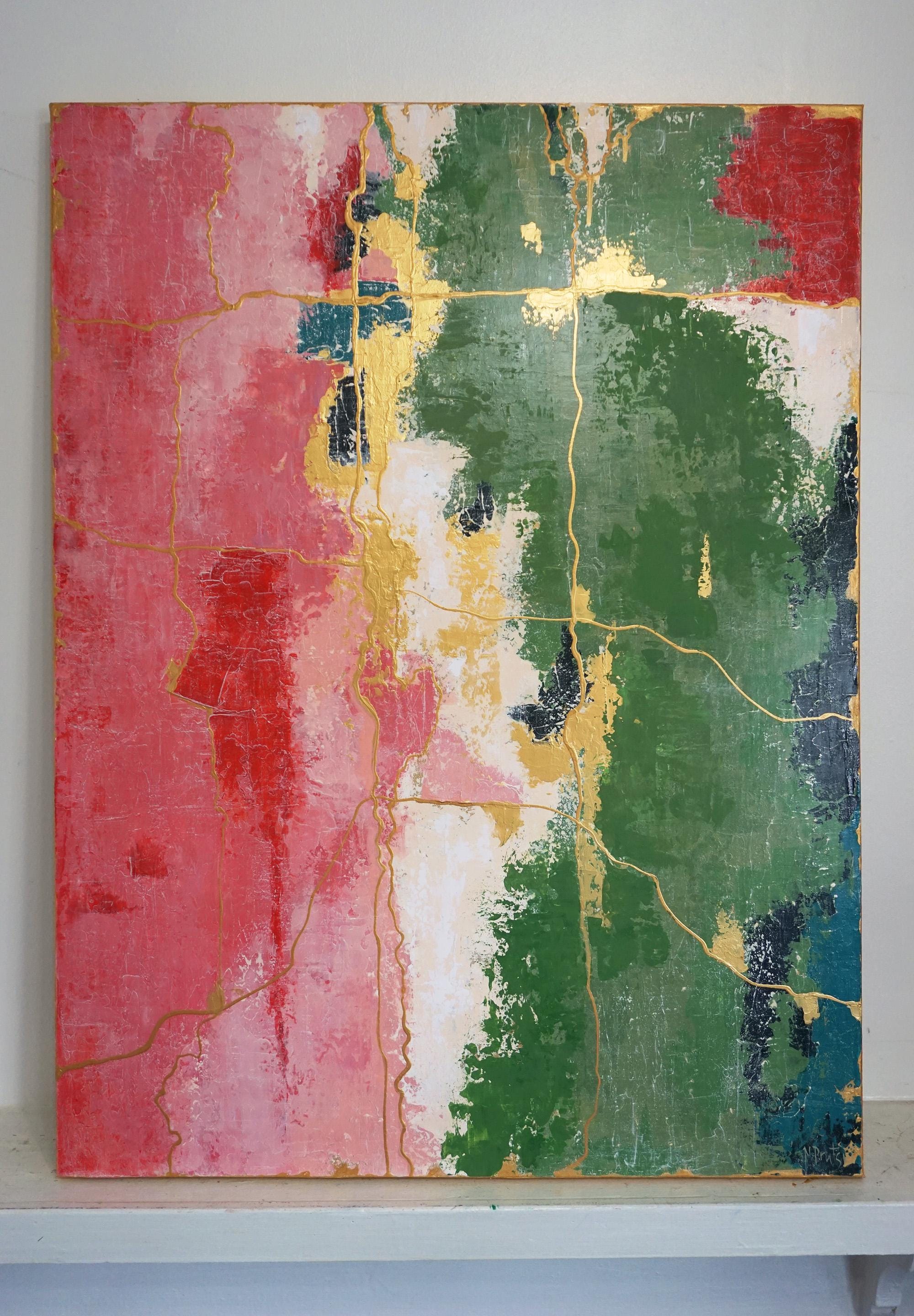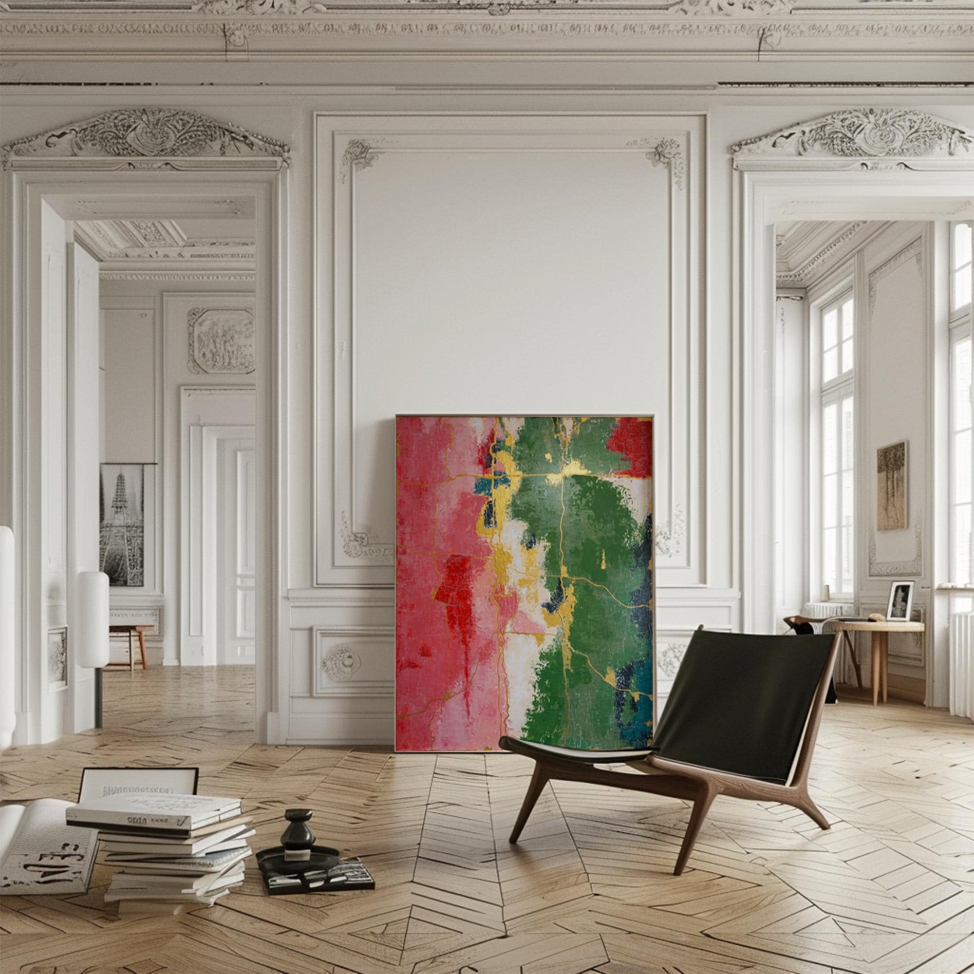 Pink Green Painting, Original Abstract Painting, Green Pink Abstract