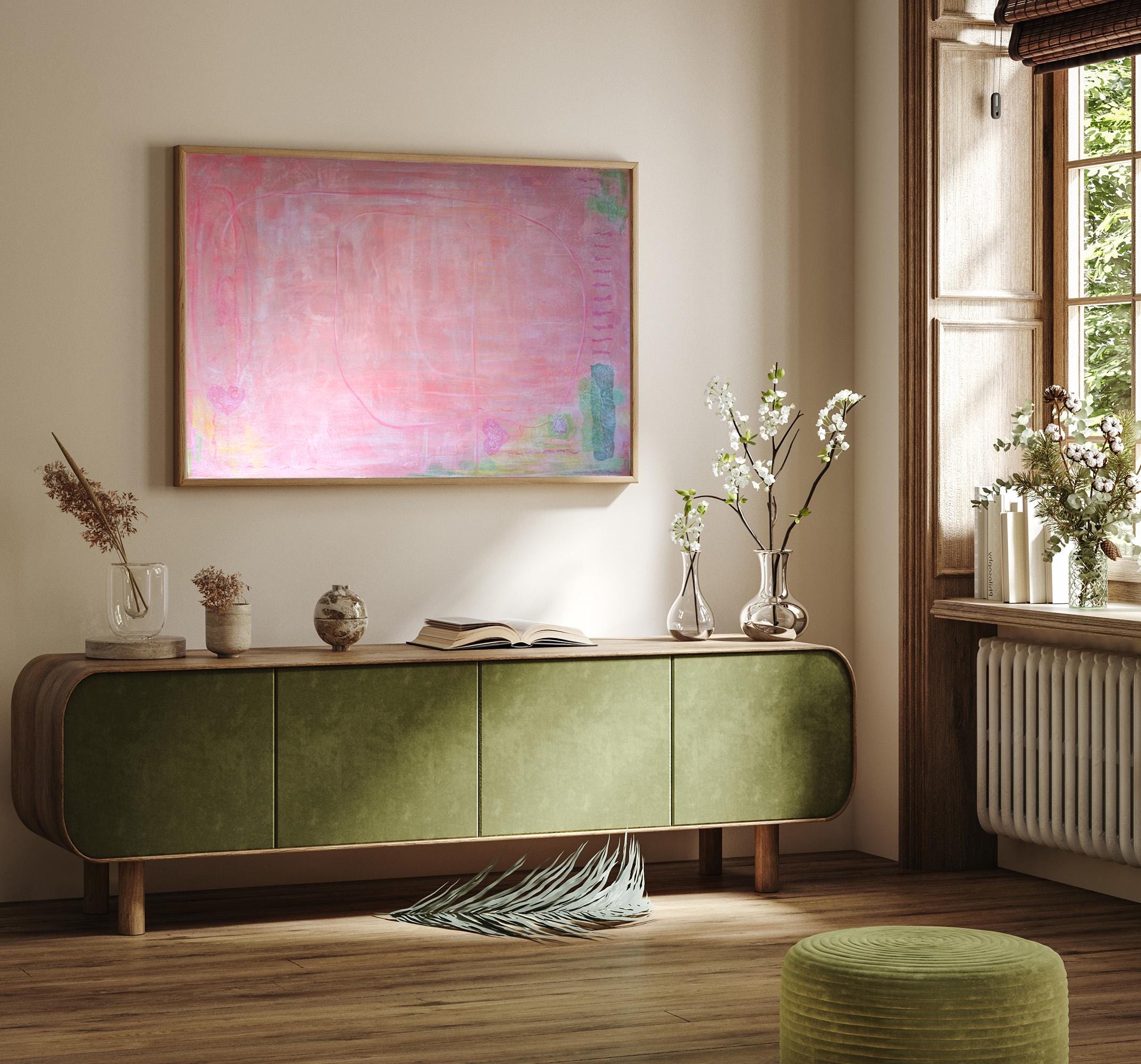 Pink Green Painting, Original Abstract Painting, Green Pink Abstract